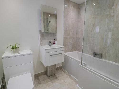 这家度假屋提供4间卧室、带冰箱和洗碗机的厨房、电视、休息区以及2间带淋浴设施的浴室。这家度假屋也配备2间浴室。