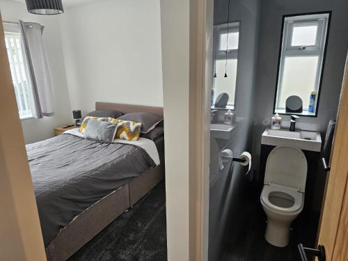 Modern Spacious walking distance to castle & town坐落于克卢伊德的阿贝尔格莱,拥有庭院,享有山景。这家住宿距离托温海滩(Towyn Beach)有2.7公里,配备花园和免费私人停车位。