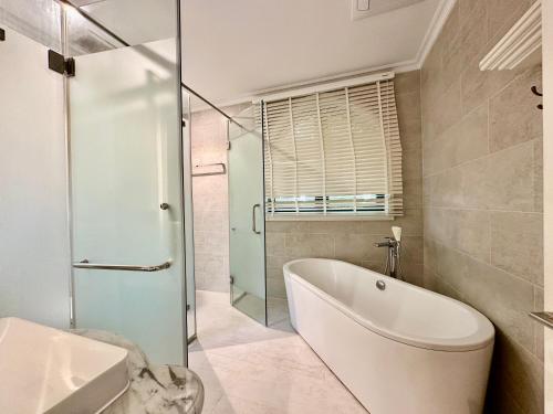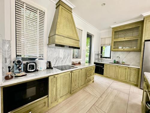 这家别墅享有池景,为客人提供阳台、休息区、平板电视、带冰箱和微波炉的设施齐全的厨房以及带坐浴盆和免费洗浴用品的私人浴室。住宿还配备炉灶、吐司机、咖啡机和电热水壶。