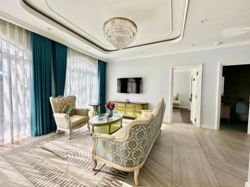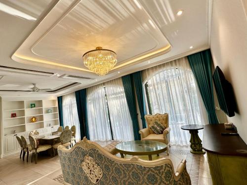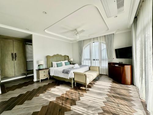 Bellevue west Phu Quoc 4BR beachfront Villa with private swimming pool坐落于富国,享有海景,提供餐厅、免费班车服务、酒吧、花园、全年开放的室外泳池和露台。住宿提供免费WiFi。