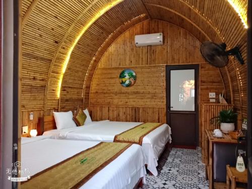Tam Coc Village Bungalow提供免费自行车、户外游泳池以及带露台和免费WiFi的空调住宿,距离白亭寺有25公里。内部提供私人停车位。