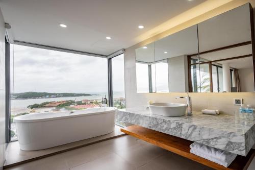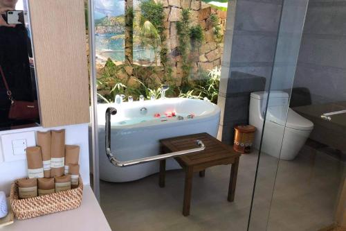 The Oceanfront Nha Trang Anh Nguyen位于芽庄,享有海景,提供户外游泳池、花园、私家海滩、共用休息室和露台。住宿提供空调,配有私人泳池、spa浴缸和桑拿浴室。