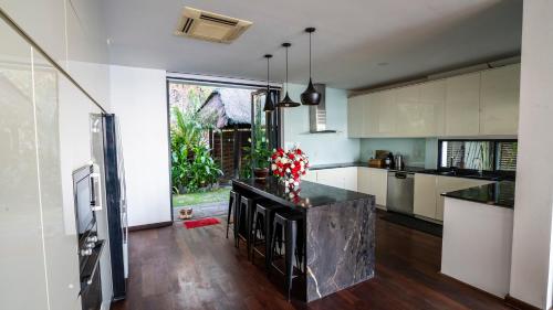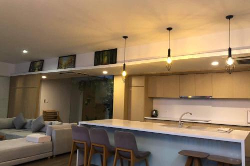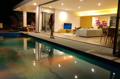 这家别墅享有池景,为客人提供阳台、休息区、平板电视、带冰箱和烤箱的设施齐全的厨房以及带淋浴设施和免费洗浴用品的私人浴室。如未自带,客人可使用额外收费的毛巾和床上用品。