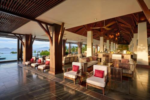 Amiana Resort Nha Trang度假村的宽敞客房坐落在海边的热带园景花园中,配有空调。客房铺有瓷砖/镶木地板,设有办公桌、平板电视、迷你吧和休息区。每间客房均设有带吹风机、淋浴和免费洗浴用品的独立浴室。