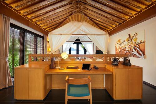 内部的Bacaro餐厅全天供应新鲜的海鲜、传统的越南美食和国际美食,酒吧提供多种热带鸡尾酒和葡萄酒。