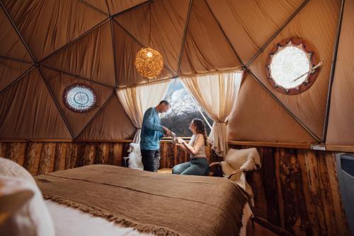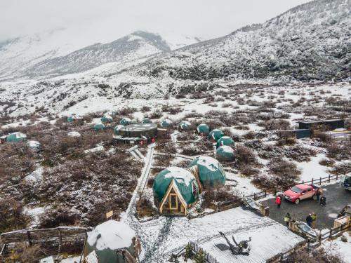 At Ecocamp Patagonia guests sleep in domes and eat meals in large community domes overlooking the majestic hills. These are fitted with private or shared bathrooms, wood stoves and private terraces.