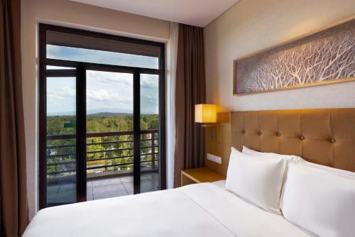 长白山万达套房假日酒店坐落在北纬41度,是滑雪的理想场所,距离著名的滑雪场和汉拿山温泉俱乐部有2分钟步行路程,距离天池10公里,距离长白山机场约有45分钟的车程。