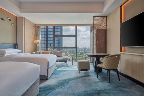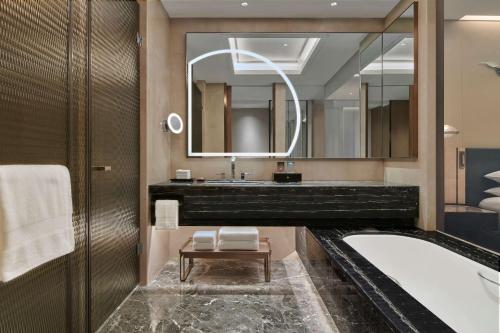 盐城希尔顿酒店坐落于盐城,提供酒吧。住宿配备室内泳池、健身中心、餐厅以及免费WiFi。