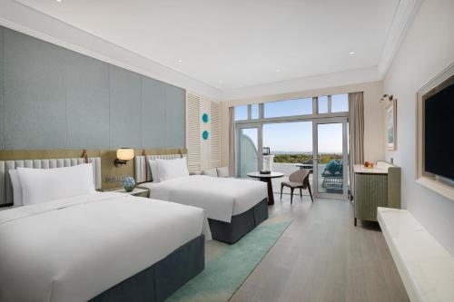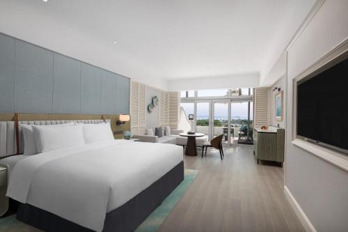 所有客房均配备了43英寸的平面电视、迷你吧和沙发。部分客房设有私人阳台,享有海景。连接浴室配有浴缸和免费洗浴用品。